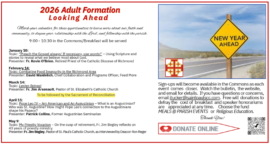 - Grow Your Faith: Visit https://evangelizerichmond.org/ @ Diocese Office of Evangelization
