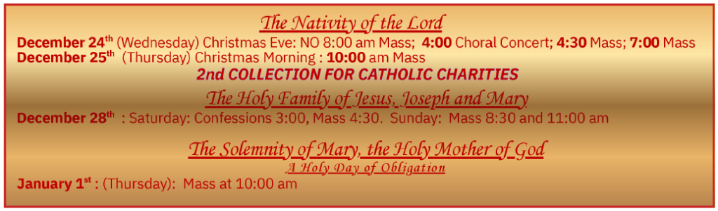 Reconciliation Every Saturday at 3:00 pm or by Appointment.