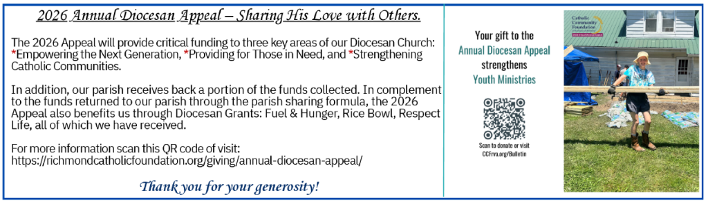 - Grow Your Faith: Visit https://evangelizerichmond.org/ @ Diocese Office of Evangelization