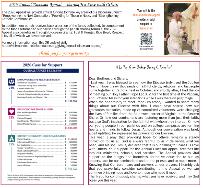 - Diocesan Appeal: (scroll down for details & QR code)